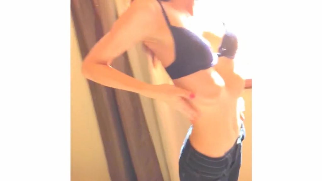 Лежа на кровати девушка в трусиках брюнетка нежно проводит пальчиками по выдающимся изгибам своего стройного тела. Она игриво проникает рукой под розовые трусы и имитирует активную деятельность, сводя с ума своими действиями всех зрителей.